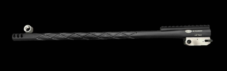 Our 22 Creedmoor 20″ stainless .224 caliber has a 1:8″ twist that’s engineered for flat trajectories with rock-steady accuracy. With a heavy factory contour, double diamond flutes, rifle forend, Encore style hinge pin, 5/8″x24 threads and a thread-on Sixer muzzle brake (plus thread protector). Has excellent recoil control for easy modularity in graphite black polish finish that resists corrosion.
